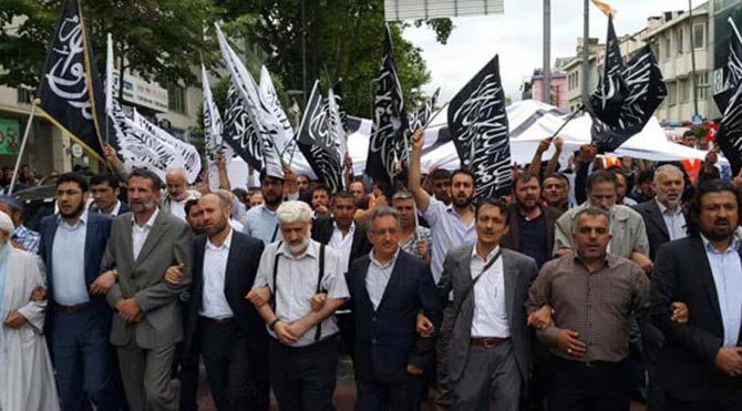 Fatih Camisi'nde Cuma namazının ardından toplanan kalabalık, Fevzi Paşa Caddesi'ne inerek yürüyüş yaptı. Yürüyüş sırasında trafik tamamen durdu. Siyah ve beyaz renkte tevhid bayrağı taşıyan kalabalık Saraçhane Parkı'na kadar yürüdü. Parkın ön bölümünde erkekler arka bölümünde de kadınlar toplandı. Tekbir getiren kalabalık, "Türkiye'den Mısır'a, Endonezya'dan Fas'a, Lübnan'dan Kürdistan'a hilafet, hilafet " sloganları attı.