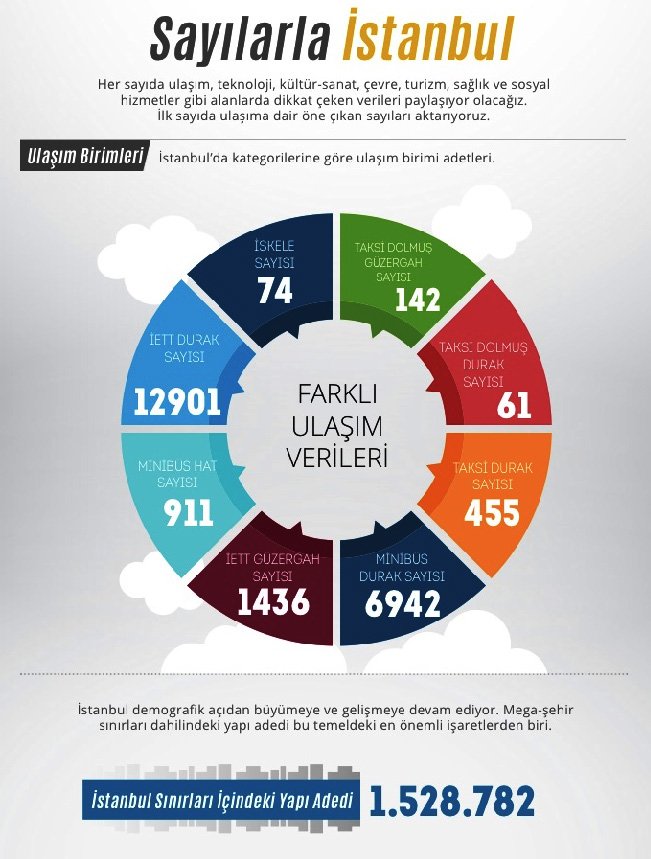 Derginin "Dijital Dönüşüm" temasıyla çıkan ilk sayısında ayrıca, İstanbul'da 12 bin 901 İETT durağı, 74 iskele, 6 bin 942 minibüs durağı, 911 minibüs hattı, 455 taksi durağı, 61 taksi dolmuş durağı ve bin 456 İETT güzergâhının yer aldığı bilgisi paylaşıldı.