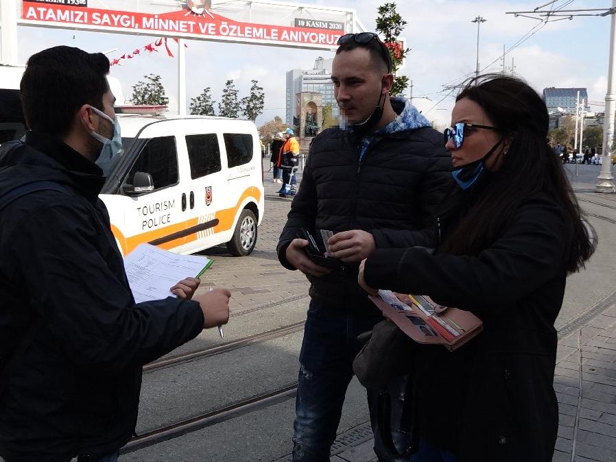 Yasağın yürürlüğe girmesiyle harekete geçen Beyoğlu İlçe Emniyet Müdürlüğü ekipleri Taksim Meydanı ve İstiklal Caddesi'nde polis aracı ve drone ile anons yaparak vatandaşları uyardı.