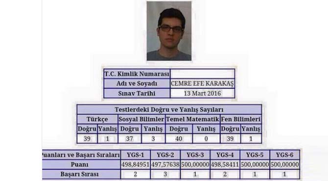 Temel lise öğrencisi Cemre Efe 3 puan türünde birinci oldu. Beylikdüzü Final Temel Lisesi Öğrencisi olan Cemre Efe Karakaş YGS 3,YGS 5 ve YGS 6 puan Türlerinde Türkiye 1.si.