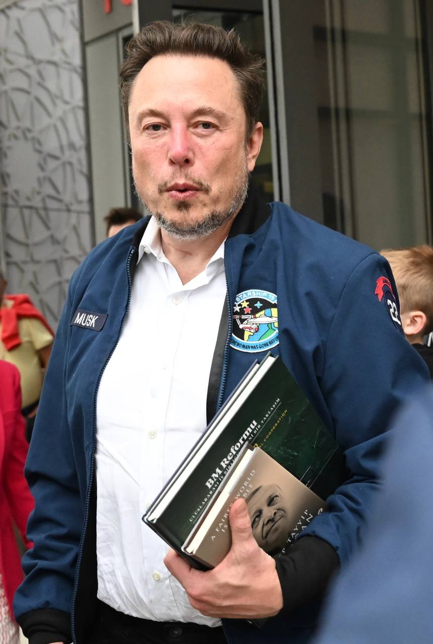 Toplantıdan Erdoğan’ın verdiği kitaplarla çıkan Musk’ın kendisine ABD Hava Kuvvetleri Akademisi’nin 2022 mezunları tarafından verilen ceketi giymesi dikkat çekti.