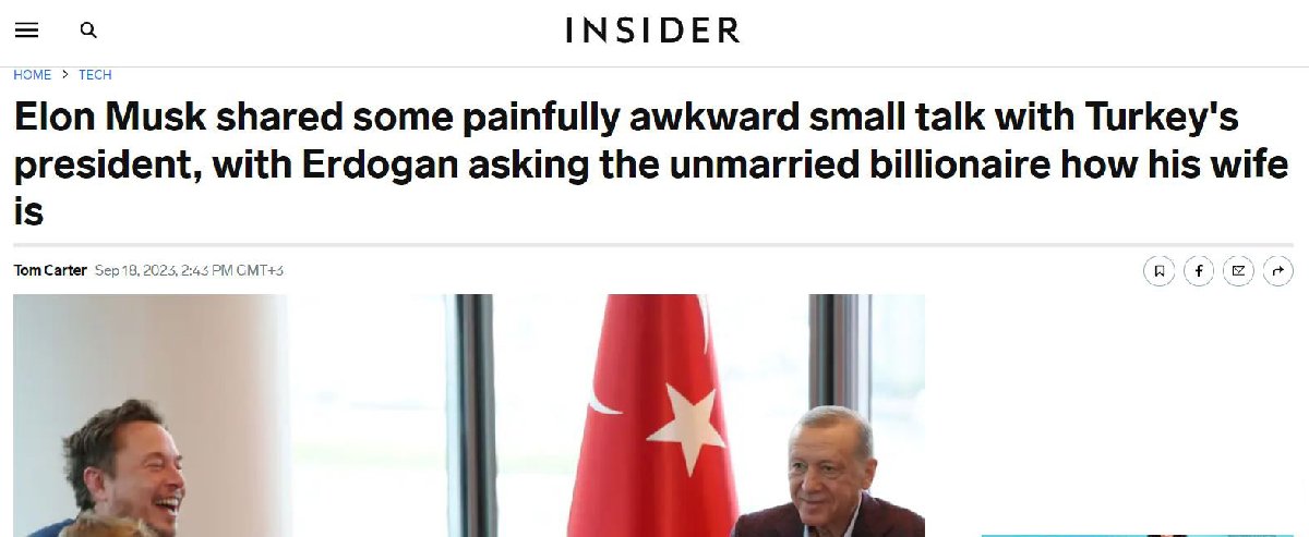 Erdoğan ve Musk'ın görüşmesine ABD merkezli medya kuruluşu Insider büyük ilgi gösterdi. Insider, "Erdoğan, evli olmayan  milyardere eşini sorunca Elon Musk, Türkiye Cumhurbaşkanı ile acı verici şekilde tuhaf bir sohbet geçirdi" başlığını kullandı.