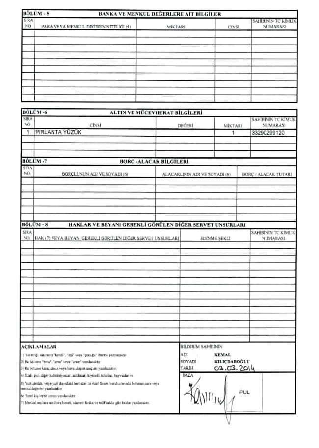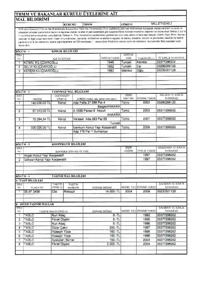Genel Başkan Kemal Kılıçdaroğlu mal varlığı beyannamesini güncelledi. CHP'nin resmi internet sitesine koydu. CHP'nin resmi sitesindeki duyuruda "Peki, R.T. Erdoğan neden mal varlığını güncelleyip yayınlayamıyor? Çünkü, helal değil haram. Çünkü ne kadar eritseler, ne kadar sıfırlasalar 30 milyon euro açıkta kalıyor. Pislik sızıyor, kokuyor beyannameye de sığmıyor" denildi.İşte CHP lideri Kılıçdaroğlu'nun güncellenmiş mal varlığı beyannamesi.