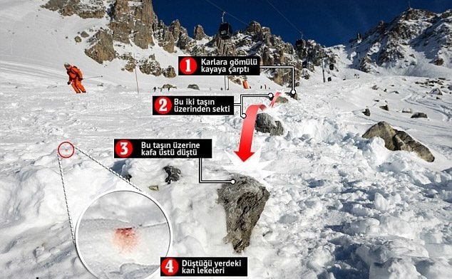 Fransa Alpleri'nde bulunan Meribel kayak köyünde çekilen ve Daily Mail'in yayınladığı fotoğraflarda kazanın nasıl yaşandığı adım adım anlatılıyor.