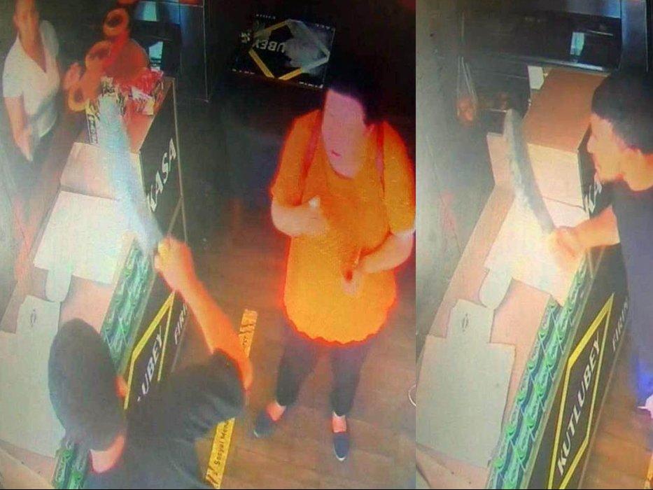 O esnada içeride bulunan müşteriler can havliyle iş yerinden dışarı çıkarken, fırın çalışanı genç kadın korku dolu anlar yaşadı. Yaşanan satırlı saldırı fırın içerisinde bulunan güvenlik kamerasınca anbean kayda alındı.