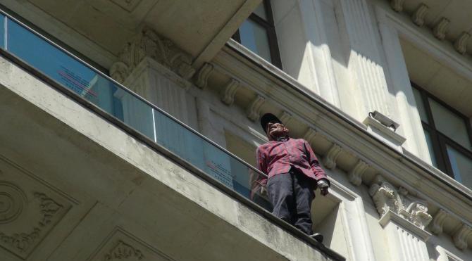 İstiklal Caddesi'nde bir AVM'nin 3'üncü katındaki balkona çıkan bir kişiyi gören vatandaşlar itfaiyeye ve polise haber verdi. Olay yerine gelen itfaiye ekipleri branda açarak önlem aldı. Polis ekipleri de vatandaşları uzaklaştırıp İstiklal Caddesi'ndeki tramvay seferlerini durdurarak emniyet şeridi çekti.