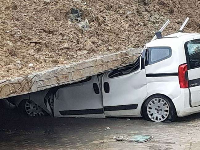 Park halindeki bir otomobil yıkılan duvarın altında kalarak hurdaya döndü. Olayda otomobilin içerisinde kimsenin olmaması facianın yaşanmasına engel oldu. Olay yerine gelen polis ve itfaiye ekipleri çevrede güvenlik şeridi çekip inceleme başlattı. Olayla ilgili tahkikat sürüyor.