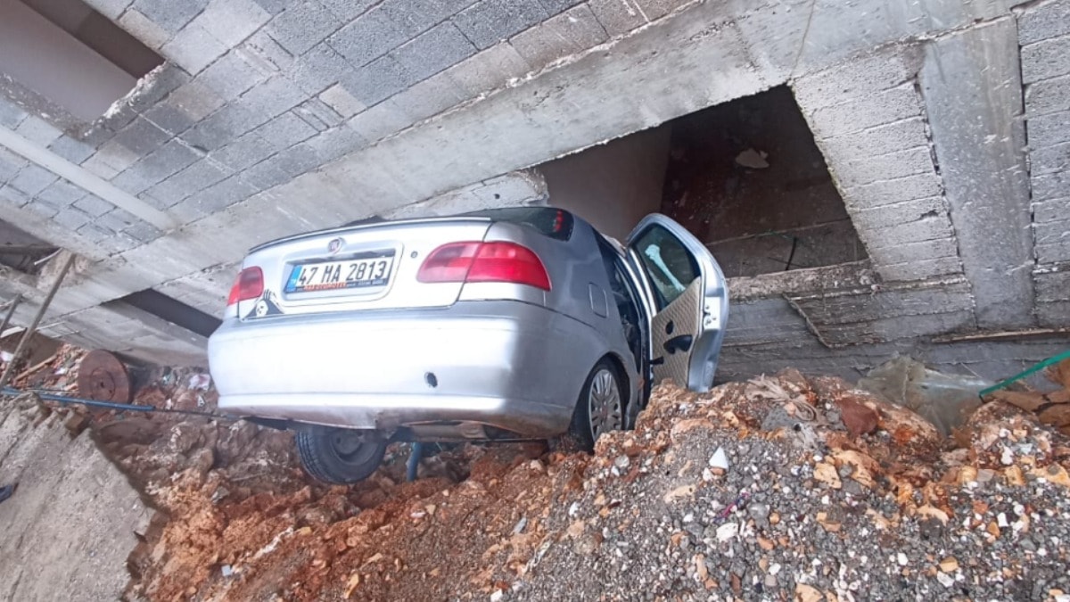Kaza, öğleden sonra Mardin Eğitim ve Araştırma Hastanesi yakınlarında meydana geldi. Sürücüsünün kontrolünü yitirdiği 47 MA 2813 plakalı otomobil, inşaat halindeki bina ile istinat duvarı arasında, yaklaşık 2 metre genişliğindeki boşluğa düştü. İhbarla olay yerine polis, itfaiye ve sağlık ekipleri sevk edildi.