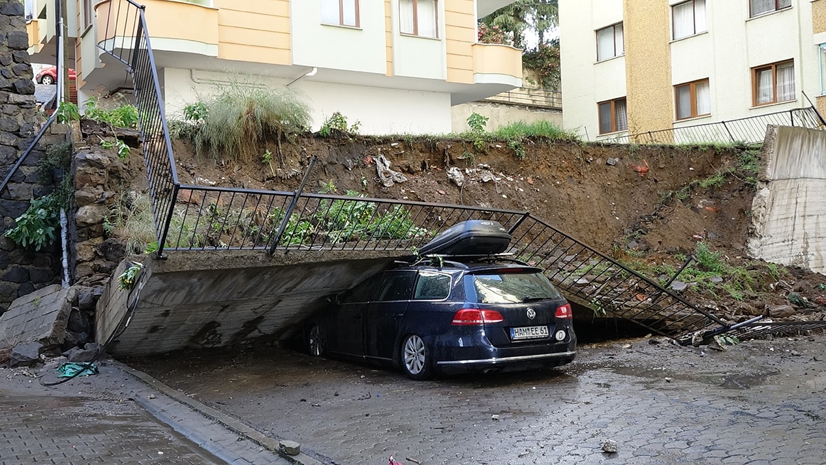 Yıkılan duvar, gurbetçi Güngör Pul'a ait HAM EE 61 plakalı park halindeki otomobilin üzerine devrildi. Endişe yaratan heyelanda yaralanan olmazken, otomobilde maddi hasar oluştu. İhbar üzerine bölgeye polis ekibi sevk edildi. Ekipler, güvenlik şeridine aldığı site bahçesine önlem aldı.