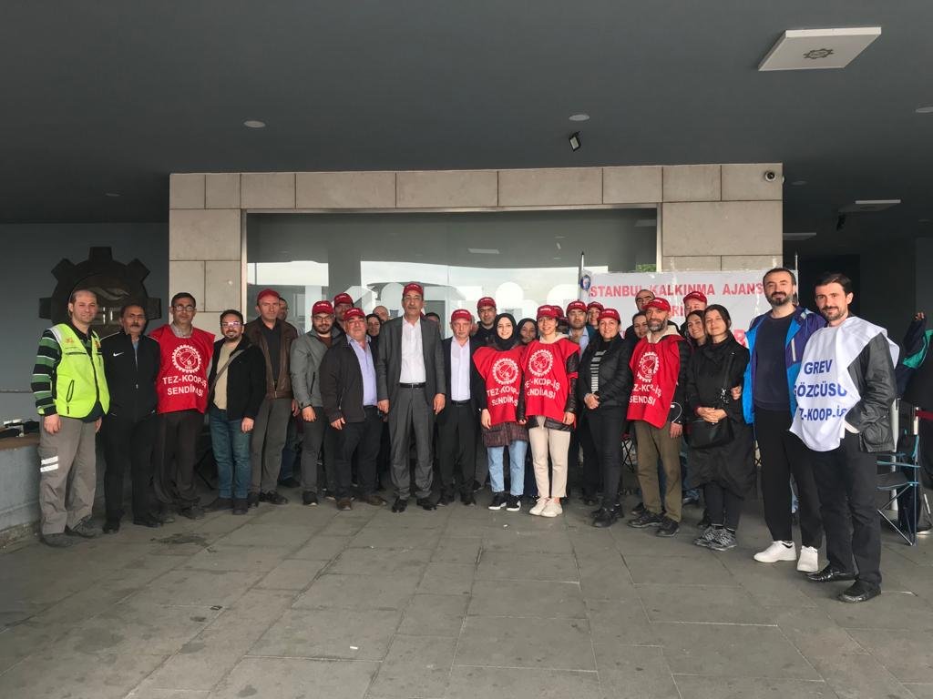 Tez-Koop-İş Sendikası'nda örgütlü bulunan İstanbul Kalkınma Ajansı çalışanları, 2022 yılının aralık ayında başlayan toplu iş sözleşmesi görüşmelerinin beşinci ayında, işveren sendikası YEREL-SEN’in teklifini reddederek 8 Mayıs'ta greve çıktı.