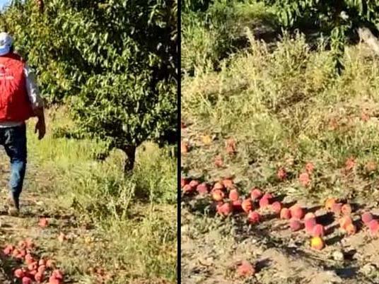 Meyveciliğin yaygın olduğu ilçenin Kocak köyünde bir üreticinin tüm ağaçları silkeleyerek ürünleri yere saçtığı video sosyal medyada büyük yankı buldu.