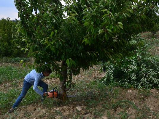 Kirazın kilosunu 2 liradan satamadığını ifade eden kiraz yetiştiricisi İsmail Ayaz, 62 dönümlük arazisindeki yaklaşık bin 500 kiraz ağacını gözünü kırpmadan elektrikli testere ile kesti.