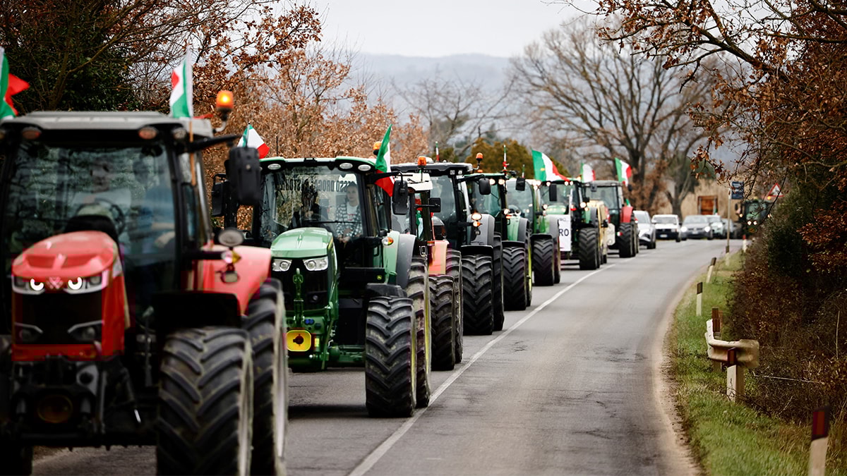 İtalya'nın Toskana ve diğer bölgelerinden çiftçiler, traktörleriyle konvoy oluşturarak Roma'ya ilerlemeye başladı.