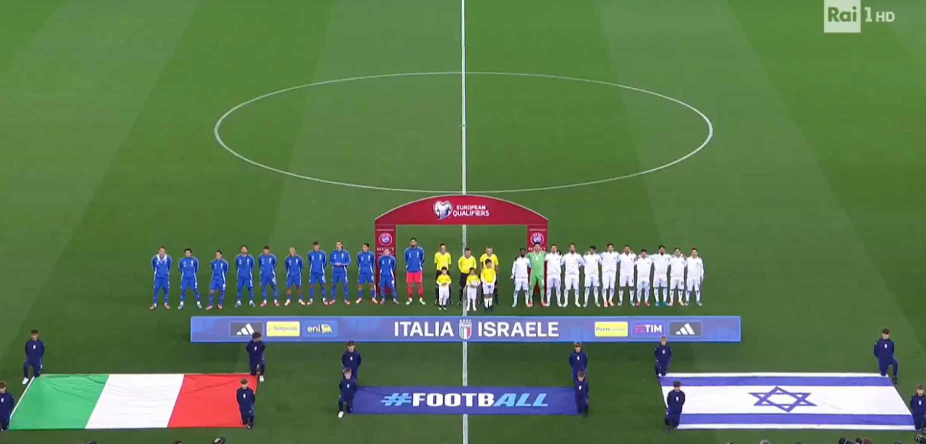 Stadyum içinde İtalyan taraftarlar tarafından İsrail milli marşı ıslıklarla karşılanırken, İsrailli bazı oyuncuların bu duruma şaşırarak etraflarına baktığı görüldü. Televizyon kameraları bu anlarda görüntüleri İsrailli taraftarlara çevirdi.