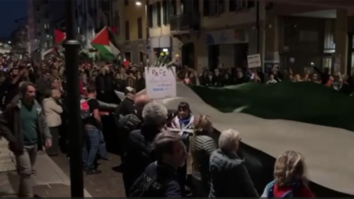 Müsabaka öncesinde Udine'de binlerce kişinin katılımıyla düzenlenen protesto yürüyüşünde, "Filistin'e özgürlük", "İsrail'i boykot et" sloganları atılırken, Filistin bayrakları ve "Özgür Filistin", "Soykırımcı İsrail" yazılı pankartlar taşındı.