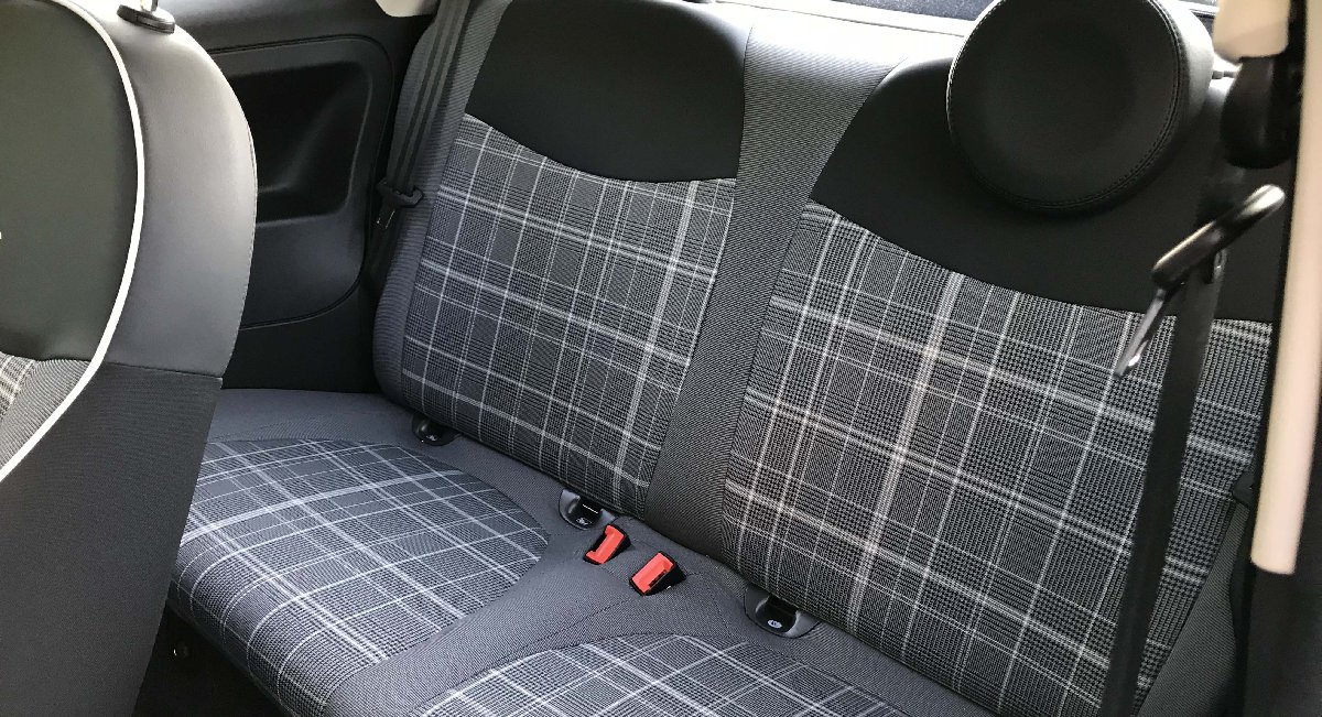 500'ün sürücü kapısını açıp içine göz attığınızda ise karşınıza gövde renginde boyalı olan ön konsol ve ekose desenli koltuklar çıkıyor.