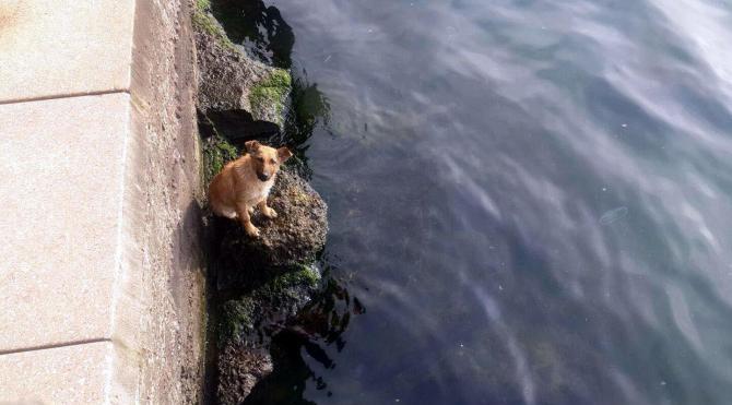Uzunkum Caddesi'de sahil bandında denizin kıyı bölgesinde taşın üzerinde mahsur kalan köpeği görenler itfaiyeye haber verdi. Gelen itfaiye ekibi, köpeği kurtarmak için çalışma başlattı. İtfaiye eri, merdiven yardımıyla inerek köpeği yukarıya çıkardı. Deniz suyuyla ıslanan köpek, bir süre kendisini kurtaran itfaiye erinin peşinde dolaştıktan sonra uzaklaştı.