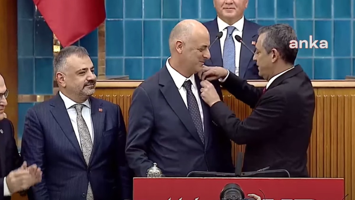 İYİ Parti'den istifa eden Ümit Özlale CHP'ye katıldı. Özlale'nin rozetini CHP Genel Başkanı Özgür Özel taktı.