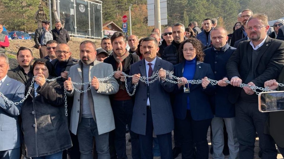 Milli Park'a gidişleri engellenen İYİ Partililer, jandarmanın durdurduğu alanda kendilerini sembolik olarak zincire vurdu. Burada basın açıklaması yapan İYİ Parti Bursa İl Başkanı Selçuk Türkoğlu, şunları söyledi;