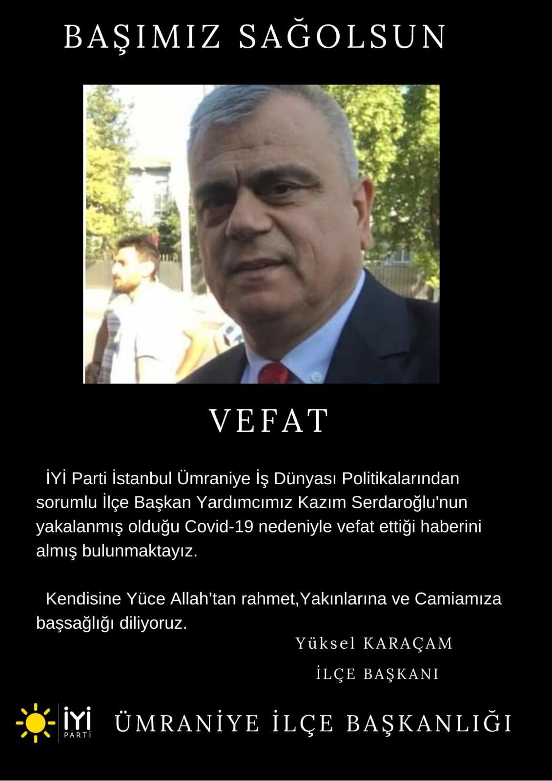 İYİ Parti Ümraniye İlçe Başkanlığı, "Ailesinin, sevenlerinin ve tüm camiamızın başı sağ olsun. Mekânı cennet olsun" mesajını paylaştı.