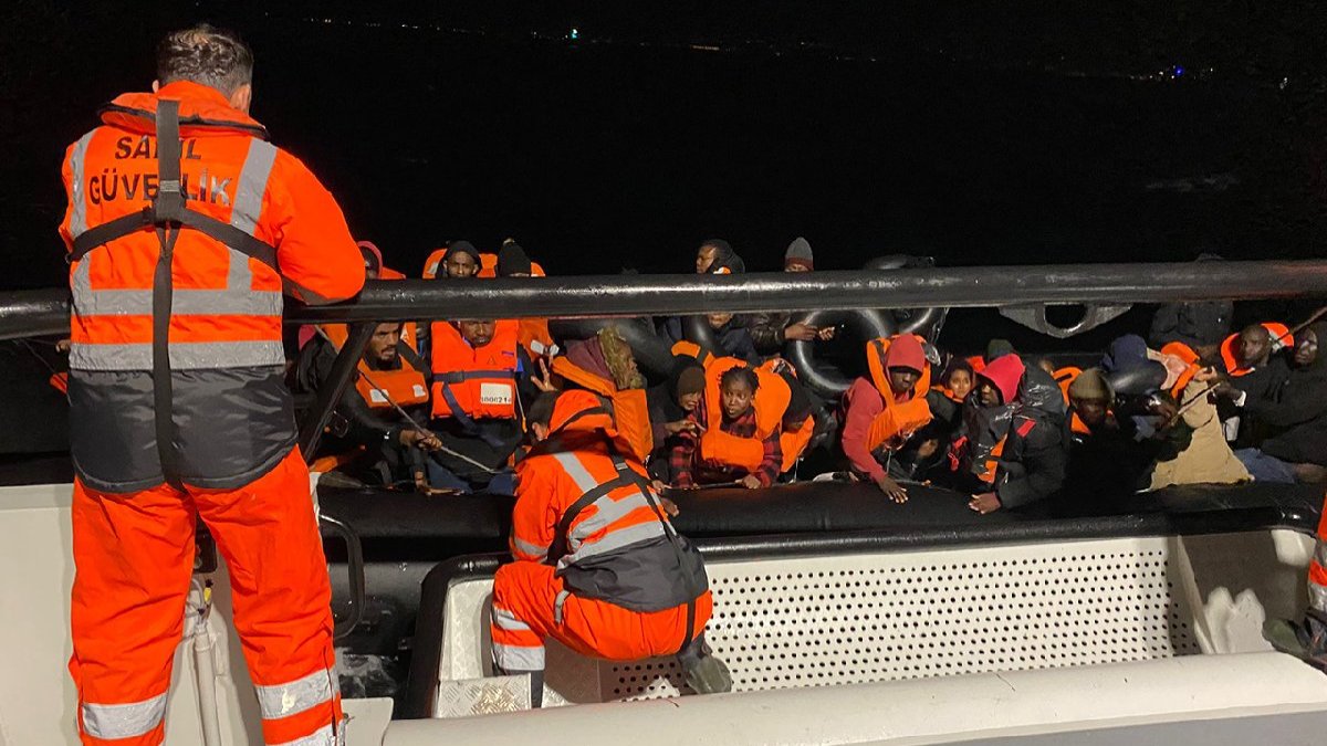 Yunanistan unsurlarınca Türk kara sularına itilen lastik bottaki 48 düzensiz göçmen kurtarıldı.