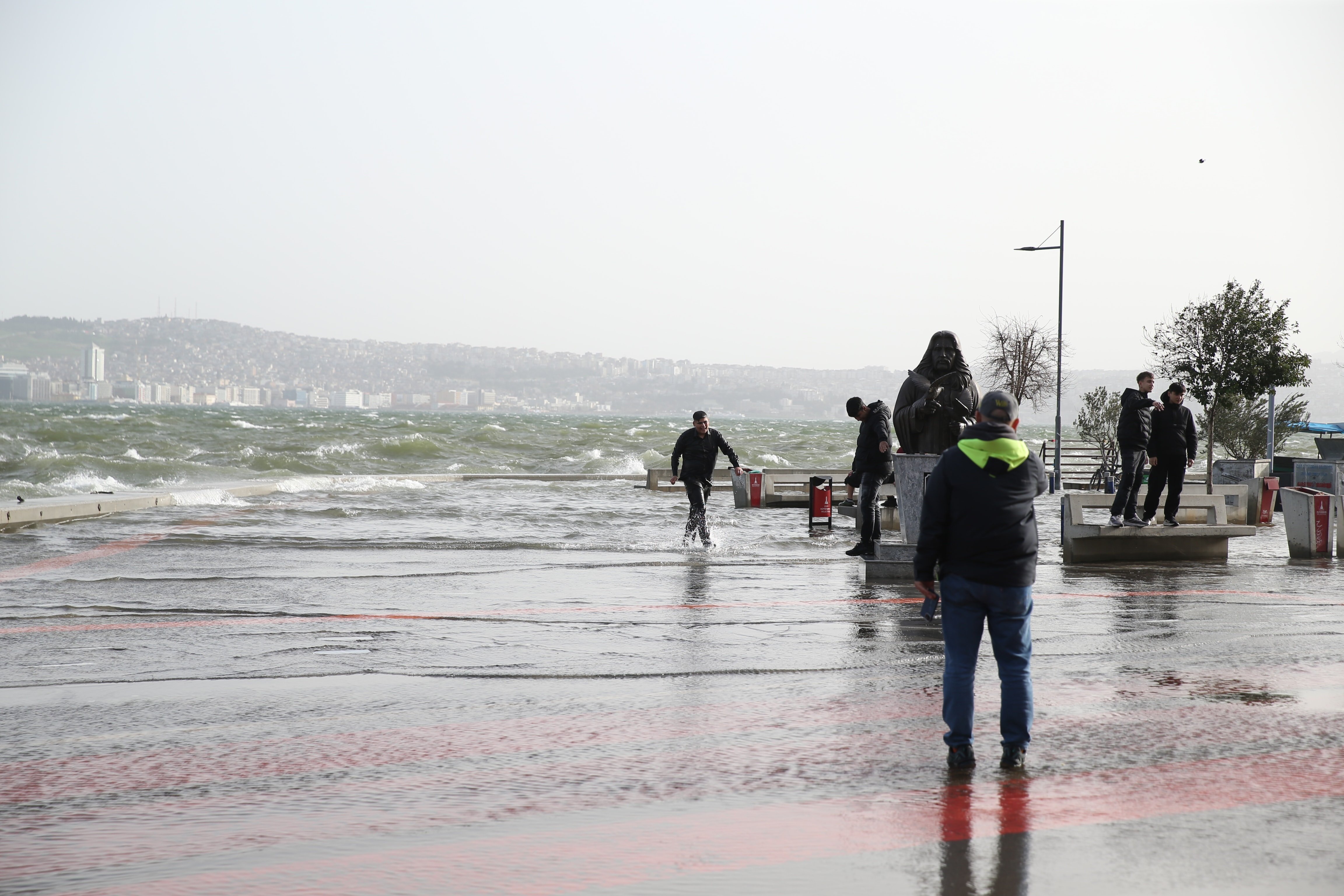 Karşıyaka Vapur İskelesi, Zübeyde Hanım Nikah Sarayı ile Karşıyaka Spor Kulübü Yelken Şube arasındaki bölgede deniz taşması nedeniyle araçlar yolda ilerlemekte güçlük çekti.