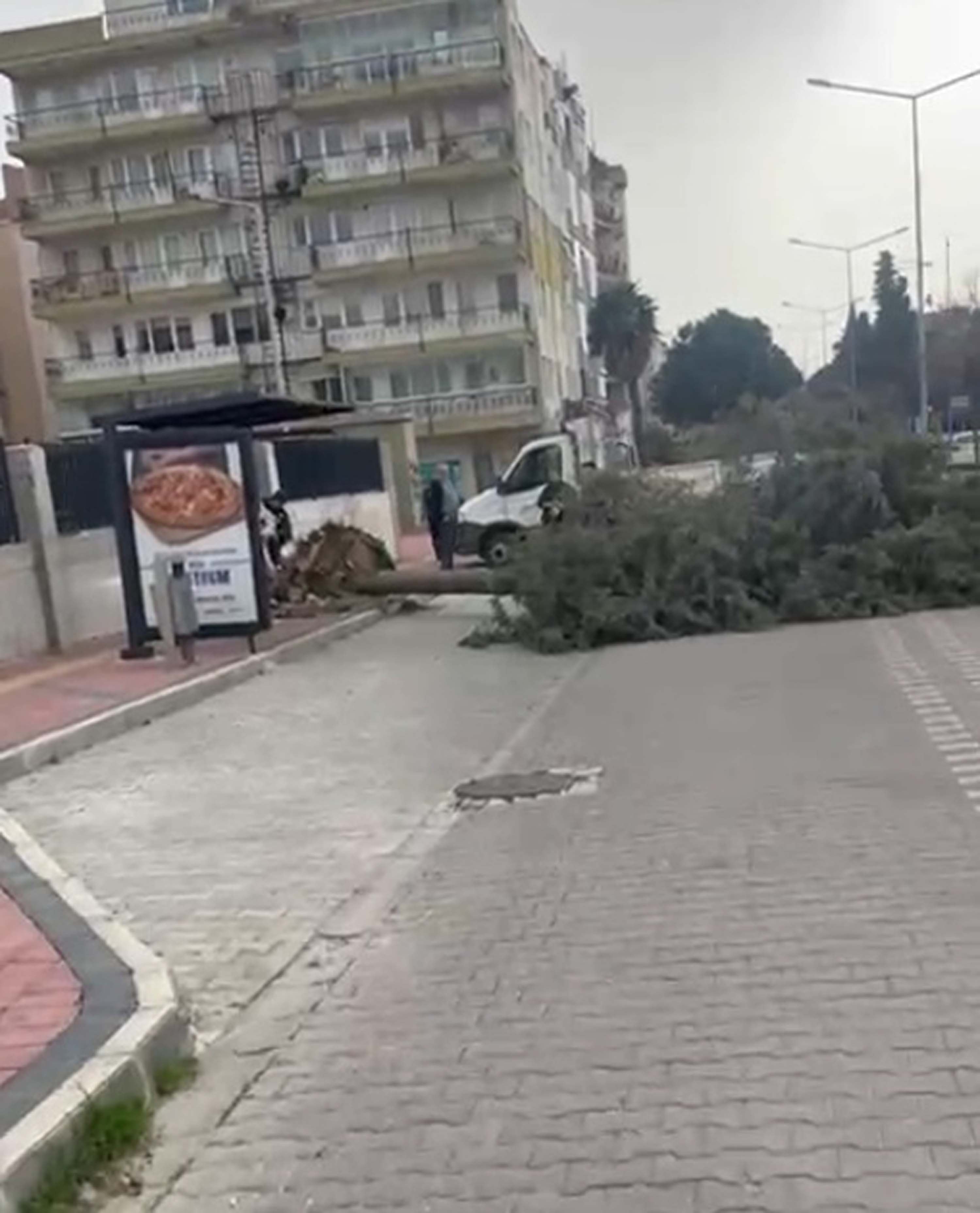 Güneydoğu yönden esen fırtınada, bazı noktalarda ağaçlar devrildi. Belediye ekipleri devrildiği yerden ağaçları ve kırılan dalları kaldırmak için çalışma başlattı.