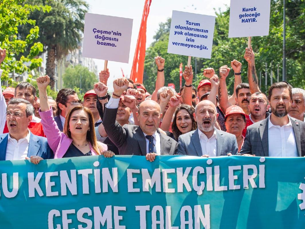 Mitinge çok sayıda milletvekili ve belediye başkanı da katıldı. Önce İzmir’in Lozan Meydanı’nda buluşan topluluk, “Bu kentin emekçileri Çeşme talan projesine hayır diyor” pankartının arkasında kortej oluşturarak Cumhuriyet Meydanı’na yürüdü. Yürüyüşte “İzmir Çeşme’ye sahip çık”, “Kurtuluş yok tek başına, ya hep beraber, ya hiç birimiz” sloganları atıldı.