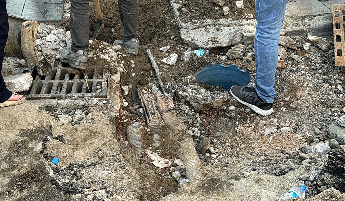 "Kablo derinliğinin 15 santimetreye ayrılmış konumunda, bu kadar küçük gömülüme derinliğine neden olan faktör; rögar kapağı bitişiğinden beyaz renkli drenaj borusunun kabloları kapağa doğru genişlemesi ve bu arada kablo koruyucu borunun bu bölümünün iptal edilmiş olması.