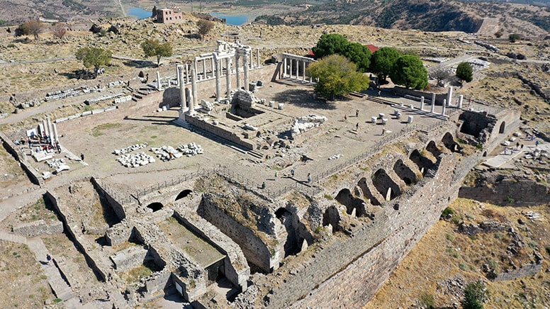 Helenistik, Roma, Doğu Roma ve Osmanlı dönemlerine ait izler taşıyan antik kentte, Asya Kıtası'nda kurulan en büyük kütüphane de yer alıyor.