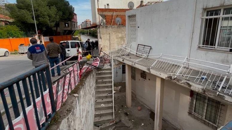 Sürücüsünün kimliği henüz belirlenemeyen 35 CLR 852 plakalı otomobil, Alim Dağhan Caddesi'nde kontrolden çıkmasının ardından yol kenarındaki iki katlı evin merdiven demirlerine çarparak boşluğa düştü.
