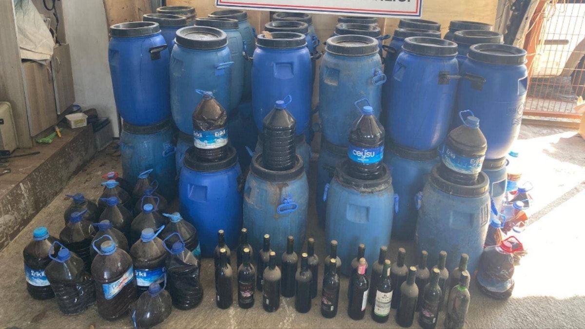 Adreslerdeki aramalarda 1297 litre el yapımı şarap ele geçirildi.