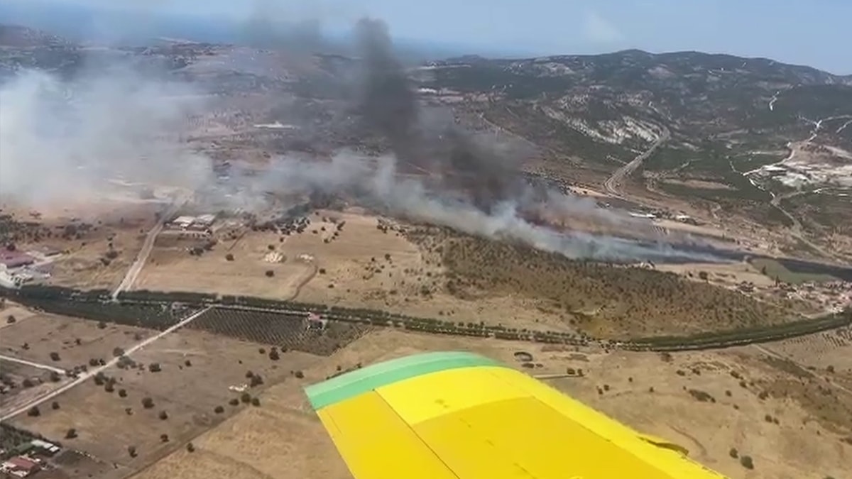 İzmir'in Foça ilçesinde otluk alanda çıkan yangına havadan ve karadan müdahale edildi.