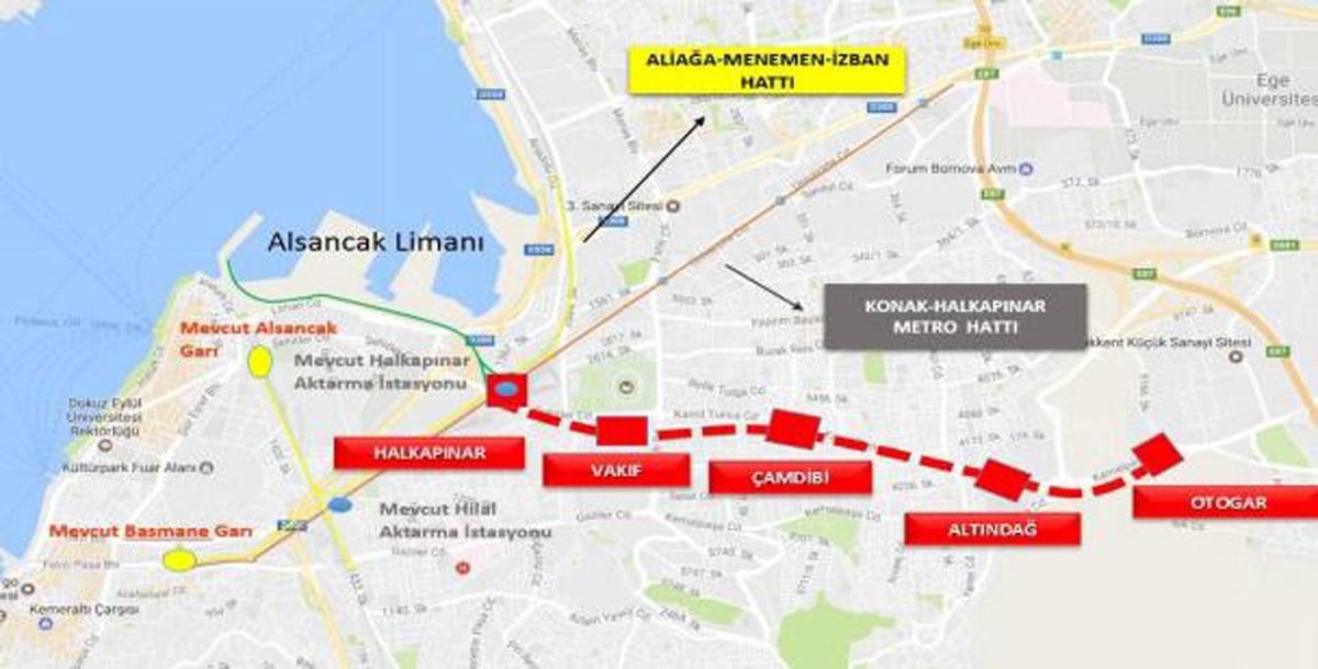 Tam 12 yıldır bitirilemeyen metro, Halkapınar, Vakıf, Çamdibi, Altındağ ve Otogar duraklarından oluşuyordu.