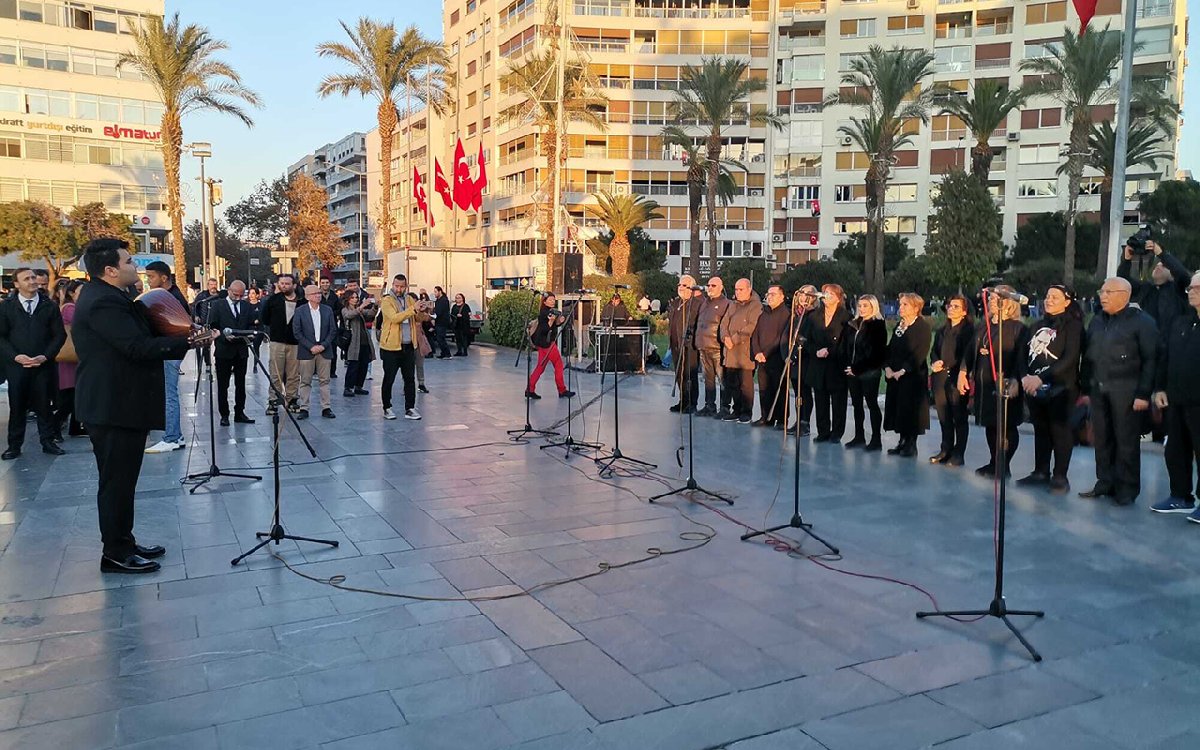 Cumhuriyet Meydanı'nda ise İzmir Büyükşehir Belediyesi Klasik Türk Müziği Korosu, "Bülbülüm altın kafeste" türküsüyle Mustafa Kemal Atatürk'ü andı.