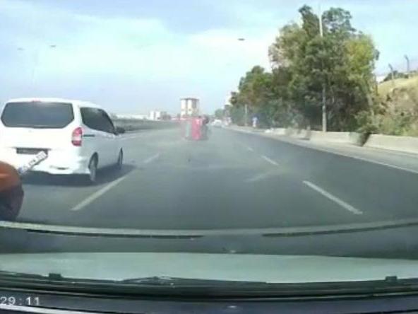 Kazanın devamında ise başka bir hafif ticari araç sürücüsü M.Y. de kaza sonucu aniden duran araca çarparak durabildi. O anlar araç kamerasına saniye saniye yansıdı. Kazada, otomobildeki yolcu K.A. hafif şekilde yaralandı. Polis ekipleri kaza ile ilgili soruşturma başlattı. (İHA)