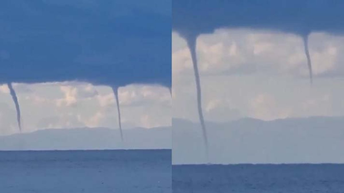 İzmir'in Çeşme ilçesi açıklarında aynı anda 8 hortum oluştu, o anlar kameraya yansıdı.