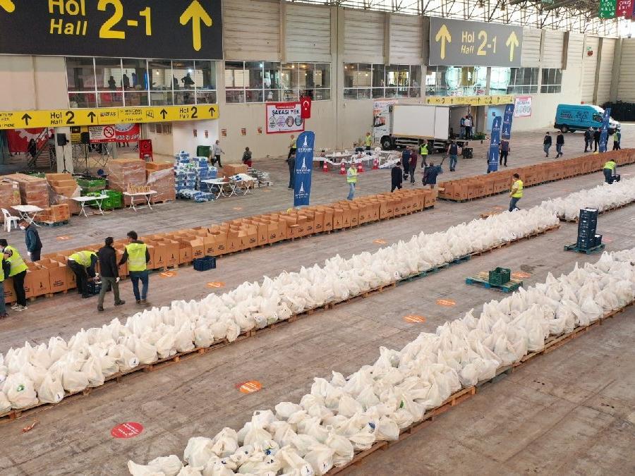 İzmirliler kendi yaptıkları kolileri Kültürpark’taki lojistik merkezine elden de teslim edebiliyor. (FOTO: SÖZCÜ)Halkın Bakkalı’nın internet sitesi üzerinden bugüne kadar 22 bin 637 tane birinci gıda paketinden ve 14 bin 708 tane de ikinci gıda paketinden alınmıştı. Yine Halkın Bakkalı’nın internet sitesinden 245 bin 90 kişilik de iftar sofrası desteği sağlanmıştı.