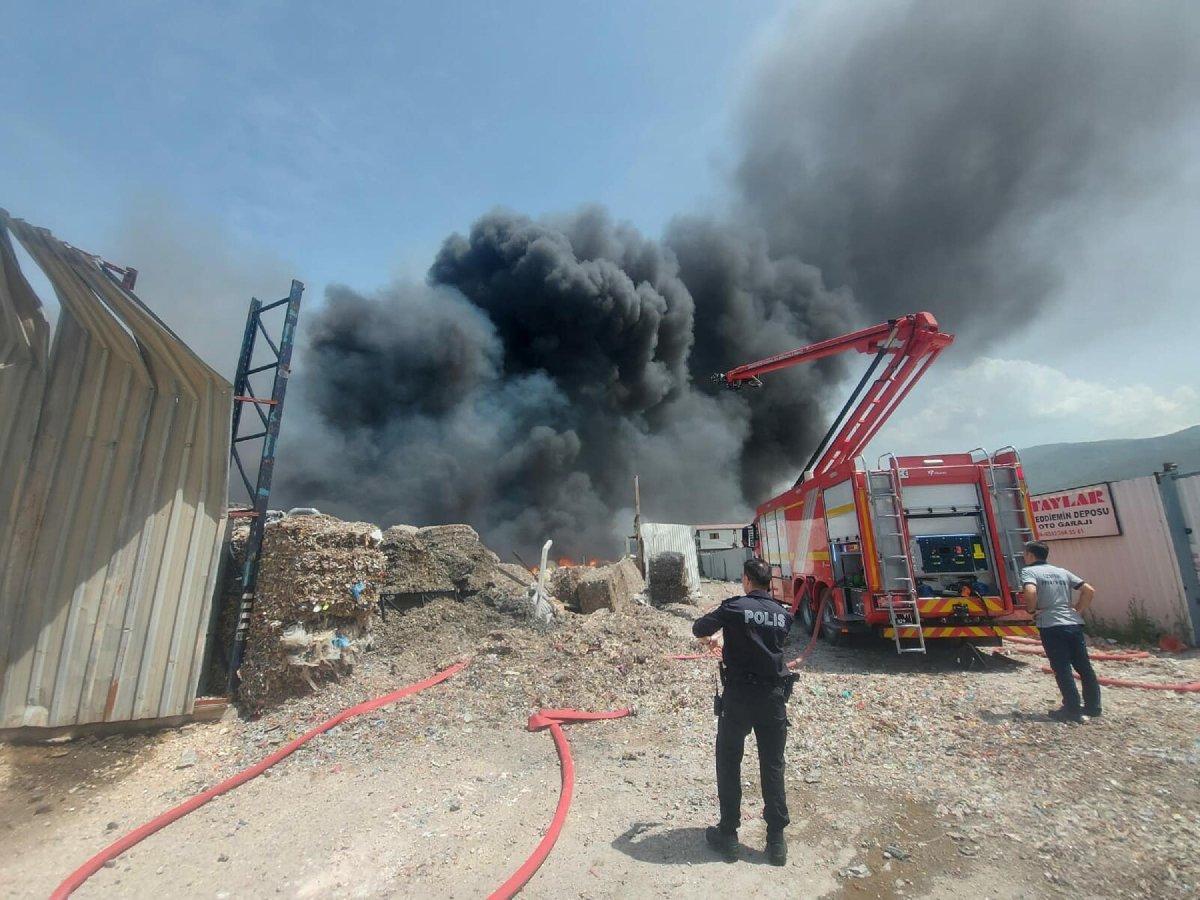 Işıkkent Mahallesi'ndeki bir geri dönüşüm fabrikasında sata 13.00 sıralarında yangın çıktı. Kağıt ve naylon atık balyaları nedeniyle alevler, kısa sürede büyüdü.