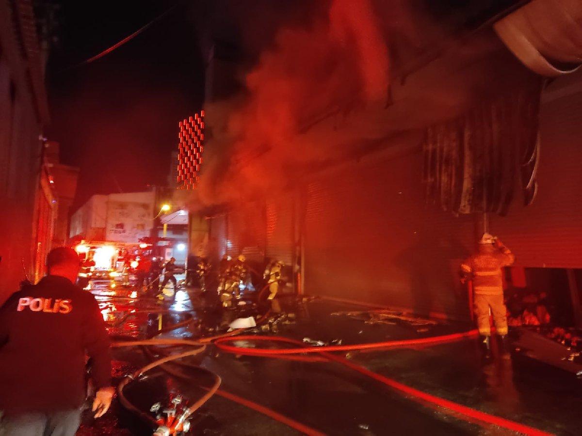 Olay yerine gelen polis ekipleri çevre güvenliği alırken, 110 AKS ekipleri ve itfaiye ekipleri ise, iş yerlerindeki kepenkleri keserek yangına müdahale etti.