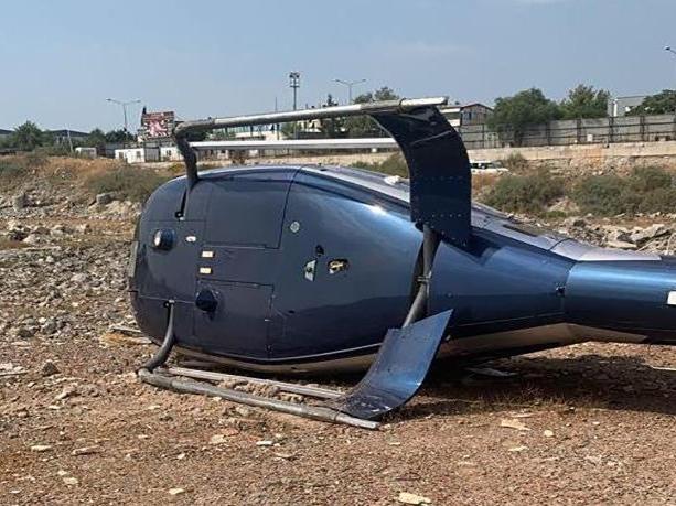 Kendi etrafından dönen helikopter yan yattı, pervanesi yere çarptı.