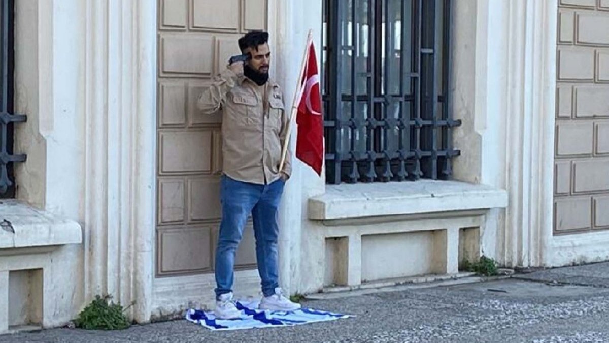 İzmir'in Konak ilçesinde bir kişi başına dayadığı tabancayla İsrail’i protesto etmeye başladı. Kendi hazırladığı, üzerinde “Fatih Sultan bizim, Mustafa Kemal’de bizim” ve "Recep Tayyip Erdoğan İzmir’de seni seviyorum. Lütfen sen de gör İzmir’i. İzmir halkının yüreği büyüktür. Allah’ımız birdir, dinimiz birdir. Türk Kürt de birdir” yazılı pankart bulunan araç ile gelen şahıs, aracı park ettikten sonra protestosuna başladı. Bir elinde tuttuğu tabancayı başına dayarken, diğer eliyle Türk Bayrağı sallayan şahıs, ayağının altına İsrail bayrağını aldı.