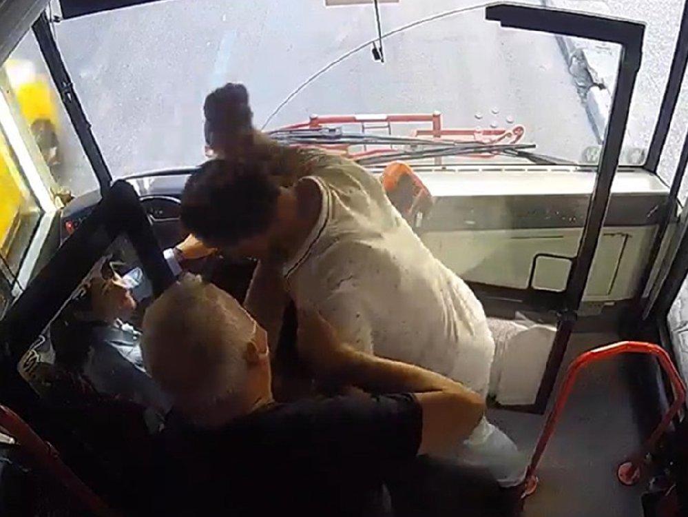 Bu sırada yolculardan G.Y. şoförden kapıyı açmasını istedi ve olumsuz yanıt alınca şoföre hakaret etti. Bunun üzerine B.A. otobüsü uygun bir yere çekerek ESHOT Şoför Destek Hattı’ndan yardım istedi. Polisin beklendiği sırada sözlü saldırının dozunu artıran zanlı, bir anda şoför koruma kapısını kırdı ve kadın şoföre yumruk attı.
