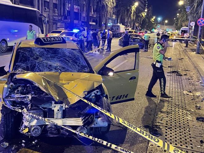 D.B. (30) idaresindeki 35 T 6814 plakalı ticari taksi, İsmet Kaplan Mahallesi Fevzipaşa Bulvarı'ndan Basmane Gar istikametine giderken yolun kenarında kağıt toplayan Gökmen Durmuş'a (67), sonra da park halindeki 42 CVT 11 plakalı otomobile çarptı.
