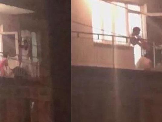Balkonda K.K. darP edildiği sırada, çocuklardan birinin de orada olduğu görülüyor. (DHA)