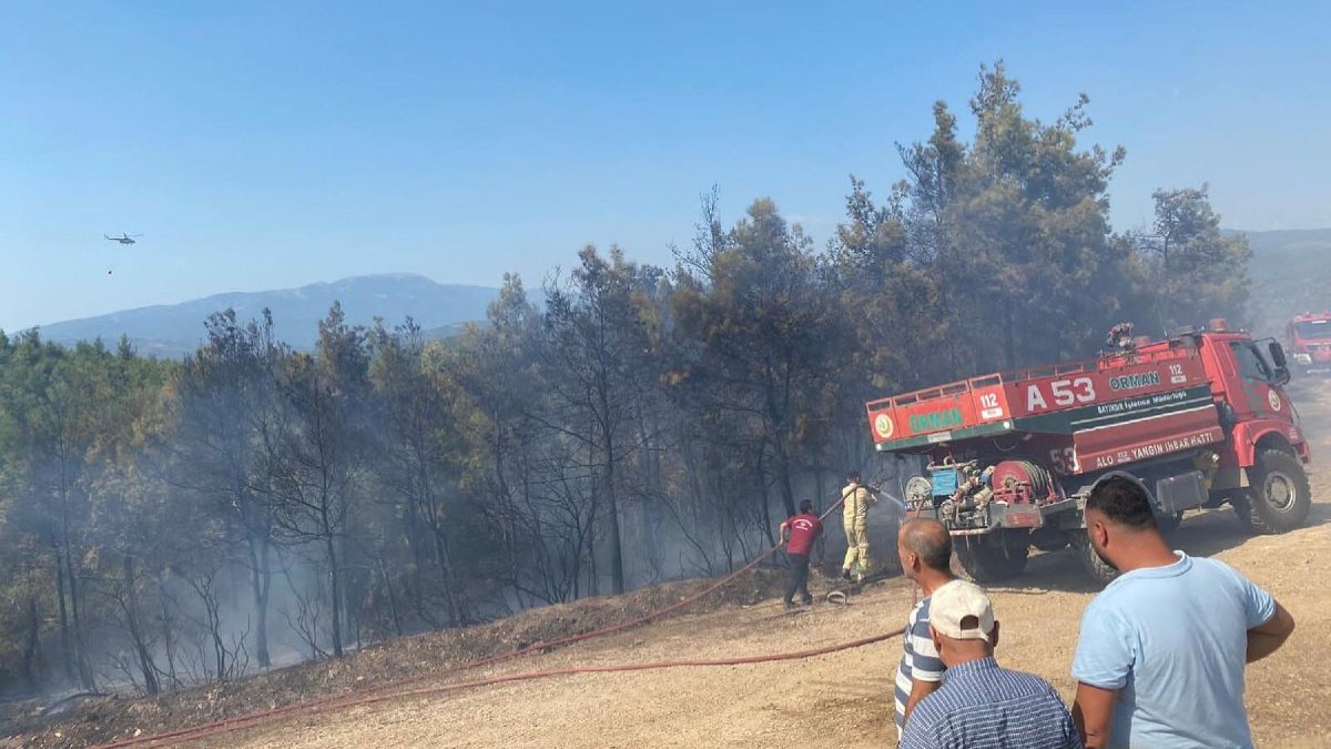 İhbar üzerine bölgeye İzmir Orman Bölge Müdürlüğü'ne ait 4 uçak, 6 helikopter, 24 arazöz, 4 su ikmal aracı ve 4 dozer sevk edildi.