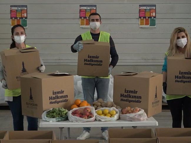 İlk etapta beş bin paket desteklenen ailelere ulaştırılacak. Sebze meyve halinden birinci elden alınan ürünler, üzerinde “İzmir halkının hediyesidir” yazan kolilerle dağıtılacak.