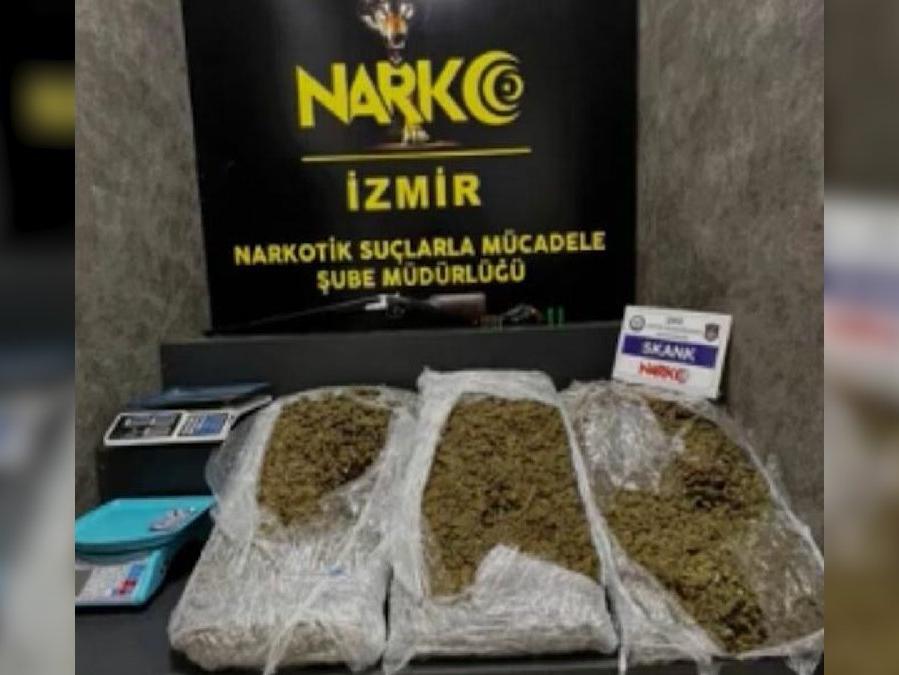 Karabağlar, Gaziemir ve Menderes ilçelerinde yapılan teknik ve fiziki takibin ardından 3 ikamet ve 5 araca düzenlenen eş zamanlı operasyonlarda vakumlu poşet içerisinde 15 kilo 500 gram esrar, 2 hassas terazi, uyuşturucu madde paketlemesinde kullanılan poşet ve çuval, 1 press makinesi, 1 vakum makinesi, 3 galara hap, 1 tabanca ve 15 mermi, 1 av tüfeği ve 2 kartuş ele geçirildi.
