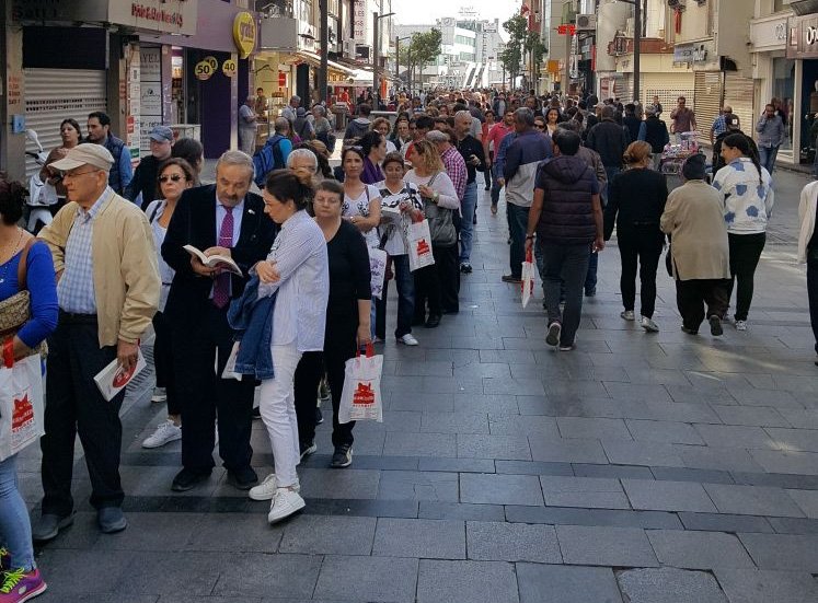 kitap-kuyrugu-ortaKitabevi'nin bulunduğu noktadan kilometrelerce imza kuyruğu oluştu.