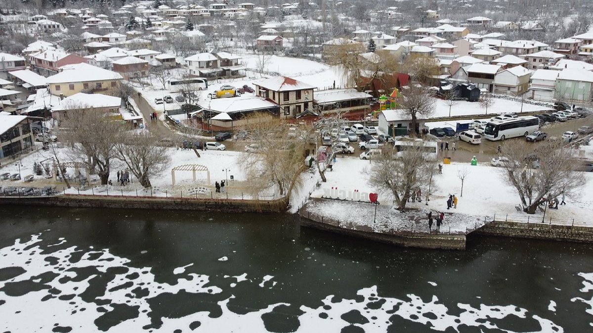 Mahalle esnafından Faruk Yayla, önceki gün gece saatlerinden başlayarak havanın soğuması nedeniyle gölün tamamen buz tuttuğunu dile getirdi. Yayla, "Kar bereketiyle geldi. İşletmemiz doldu taştı. Yazın 5 bin olan nüfusumuz şu an hafta sonları 20 bin kişiyi görüyoruz. Bu ender görülen bir olaydır. Herkesi Gölcük'e bekliyoruz." dedi. (AA)